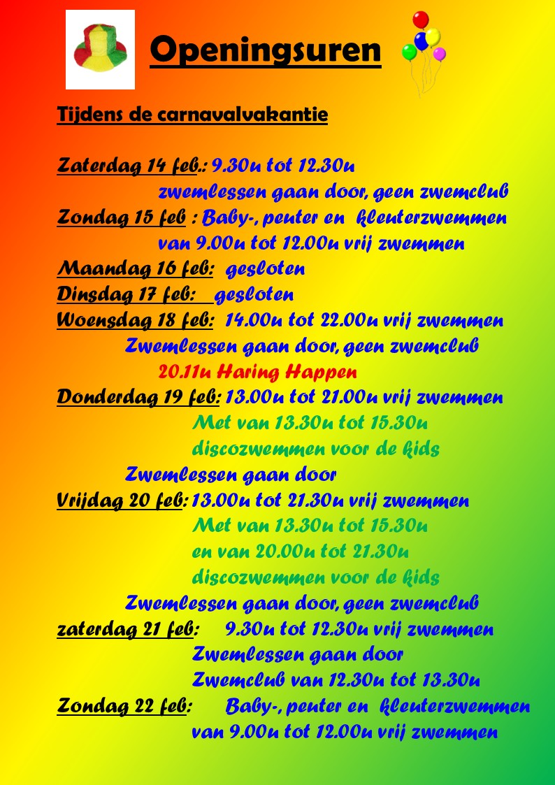 de avonduren van 20u tot 21u zijn steeds voorzien voor het volwassenzwemmen. Dit kan elke weekdag behalve op vrijdagavond